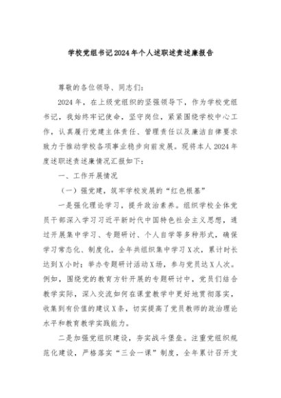 / 【七哥公文】2025年:学校党组书记2024年个人述职述责述廉报告+更多免费公文+VX:QiGeGongWen2024
