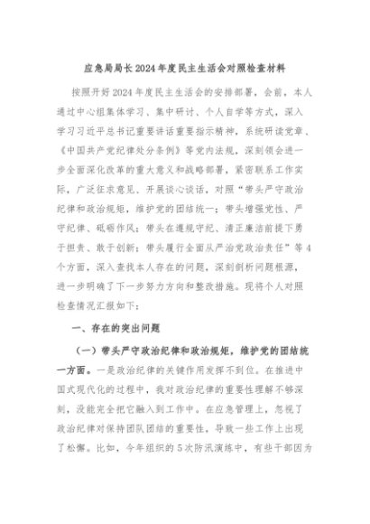 / 【七哥公文】2025年:应急局局长2024年度民主生活会对照检查材料+更多免费公文+VX:QiGeGongWen2024