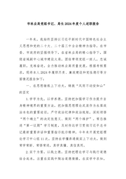 / 【七哥公文】2025年:市林业局党组书记、局长2024年度个人述职报告+更多免费公文+VX:QiGeGongWen2024