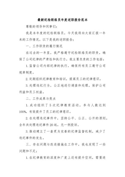 / 【七哥公文】2025年:最新纪检联络员年度述职报告范本+更多免费公文+VX:QiGeGongWen2024