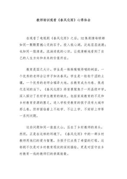 / 【七哥公文】2025年:教师培训观看《春风化雨》心得体会+更多免费公文+VX:QiGeGongWen2024