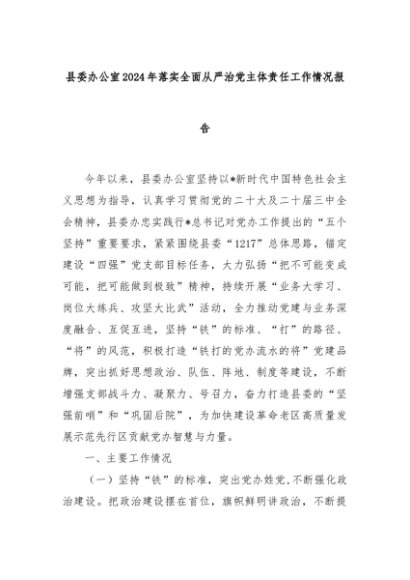 【七哥公文】2025年:县委办公室2024年落实全面从严治党主体责任工作情况报告+更多免费公文+VX:QiGeGongWen2024