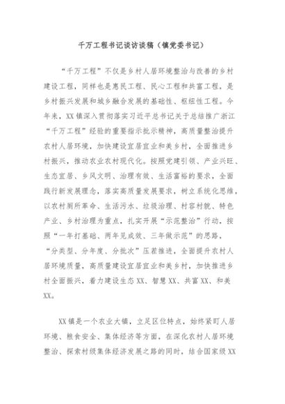 / 【七哥公文】2025年:千万工程书记谈访谈稿(镇党委书记)+更多免费公文+VX:QiGeGongWen2024