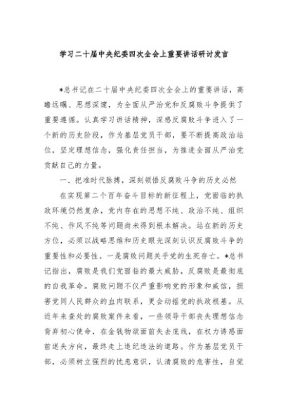 / 【七哥公文】2025年:学习二十届中央纪委四次全会上重要讲话研讨发言+更多免费公文+VX:QiGeGongWen2024