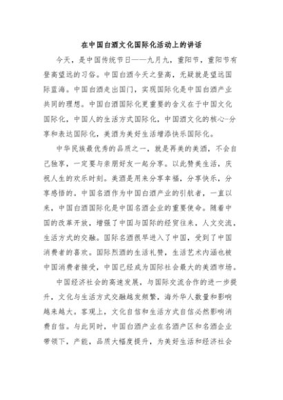【七哥公文】2025年:在中国白酒文化国际化活动上的讲话+更多免费公文+VX:QiGeGongWen2024