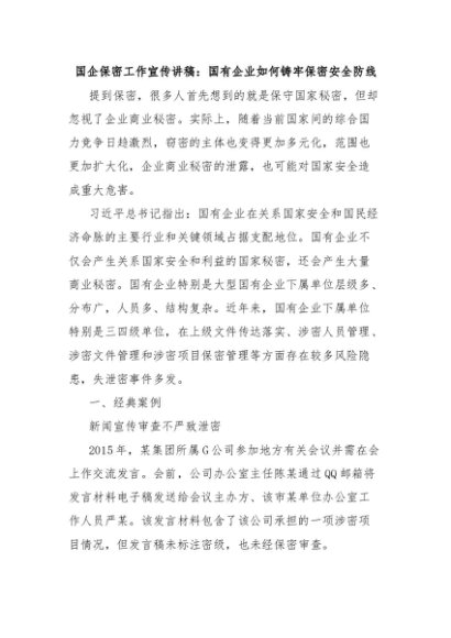 【七哥公文】2025年:国企保密工作宣传讲稿:国有企业如何铸牢保密安全防线+更多免费公文+VX:QiGeGongWen2024