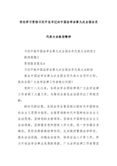 【七哥公文】2025年:传达学习贯彻习近平总书记向中国法学会第九次全国会员代表大会致信精神+更多免费公文+VX:QiGeGongWen2024