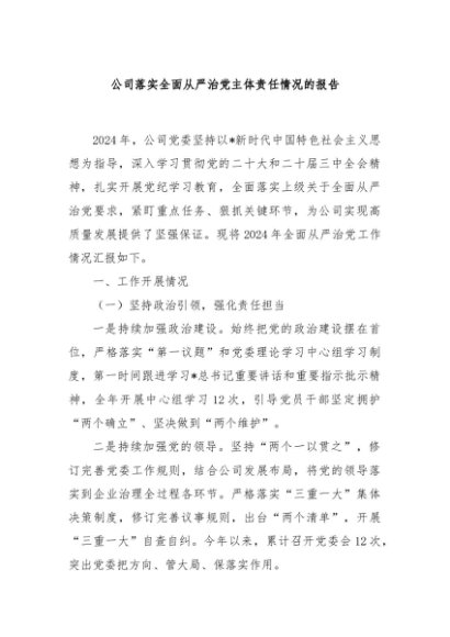 / 【七哥公文】2025年:公司落实全面从严治党主体责任情况的报告+更多免费公文+VX:QiGeGongWen2024