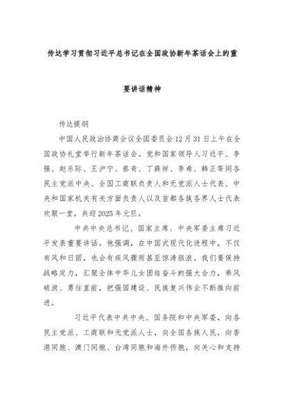 【七哥公文】2025年:传达学习贯彻习近平总书记在全国政协新年茶话会上的重要讲话精神+更多免费公文+VX:QiGeGongWen2024
