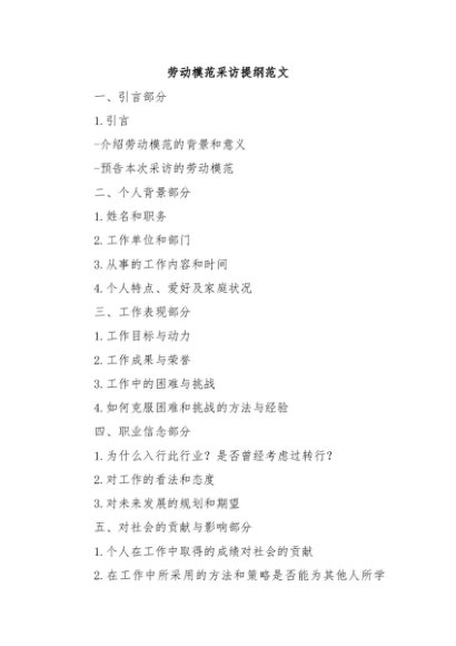 / 【七哥公文】2025年:劳动模范采访提纲范文+更多免费公文+VX:QiGeGongWen2024