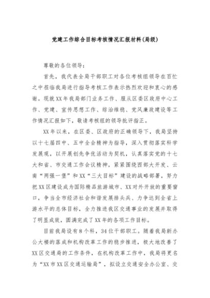 / 【七哥公文】2025年:党建工作综合目标考核情况汇报材料(局级)+更多免费公文+VX:QiGeGongWen2024