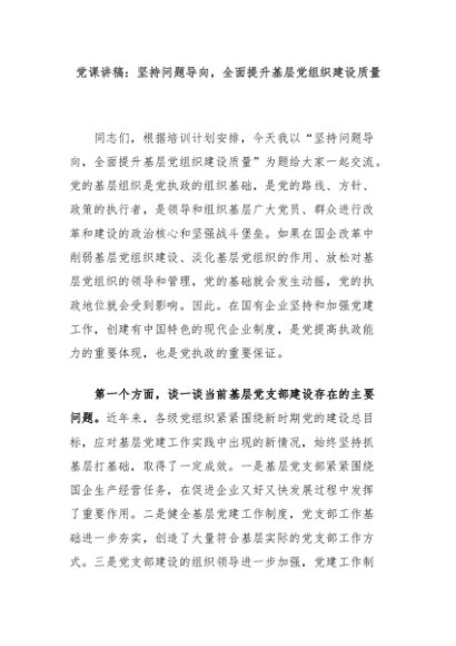 【七哥公文】2025年:党课讲稿:坚持问题导向,全面提升基层党组织建设质量+更多免费公文+VX:QiGeGongWen2024