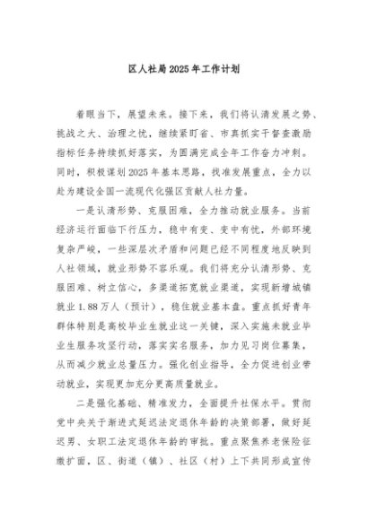 / 【七哥公文】2025年:区人社局2025年工作计划+更多免费公文+VX:QiGeGongWen2024
