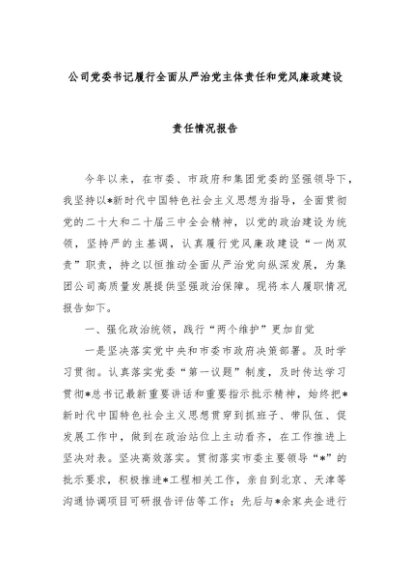 【七哥公文】2025年:公司党委书记履行全面从严治党主体责任和党风廉政建设责任情况报告+更多免费公文+VX:QiGeGongWen2024