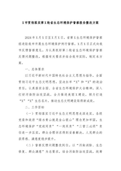 / 【七哥公文】2025年:X市贯彻落实第X轮省生态环境保护督察报告整改方案+更多免费公文+VX:QiGeGongWen2024