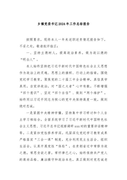 / 【七哥公文】2025年:乡镇党委书记2024年工作总结报告+更多免费公文+VX:QiGeGongWen2024