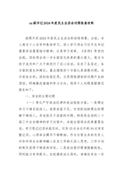 / 【七哥公文】2025年:xx副书记2024年度民主生活会对照检查材料+更多免费公文+VX:QiGeGongWen2024