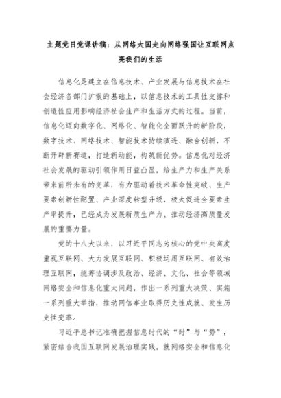 【七哥公文】2025年:主题党日党课讲稿:从网络大国走向网络强国让互联网点亮我们的生活+更多免费公文+VX:QiGeGongWen2024