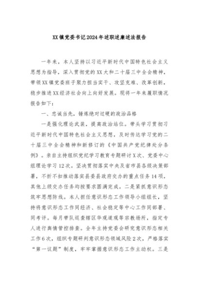 / 【七哥公文】2025年:XX镇党委书记2024年述职述廉述法报告+更多免费公文+VX:QiGeGongWen2024