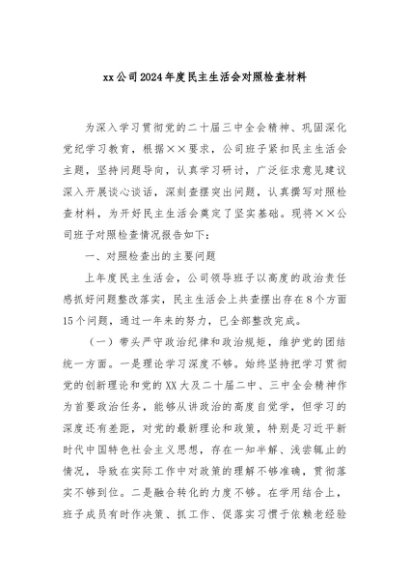 / 【七哥公文】2025年:xx公司2024年度民主生活会对照检查材料+更多免费公文+VX:QiGeGongWen2024