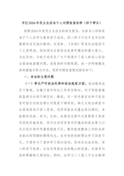 【七哥公文】2025年:书记2024年民主生活会个人对照检查材料(四个带头)+更多免费公文+VX:QiGeGongWen2024