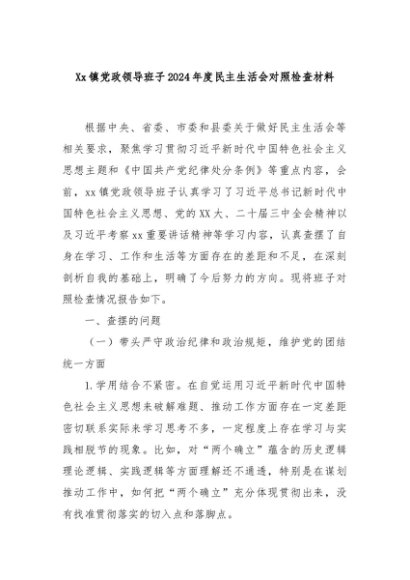 【七哥公文】2025年:Xx镇党政领导班子2024年度民主生活会对照检查材料+更多免费公文+VX:QiGeGongWen2024