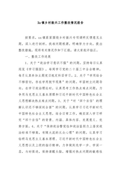 / 【七哥公文】2025年:Xx镇乡村振兴工作整改情况报告+更多免费公文+VX:QiGeGongWen2024