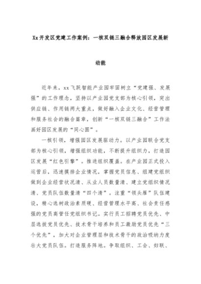 【七哥公文】2025年:Xx开发区党建工作案例:一核双链三融合释放园区发展新动能+更多免费公文+VX:QiGeGongWen2024