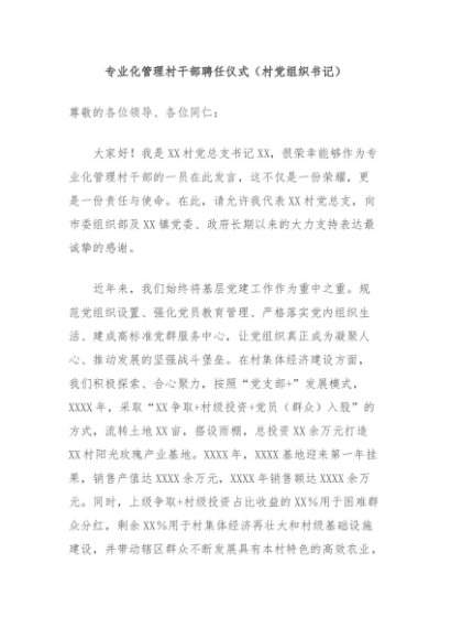 【七哥公文】2025年:专业化管理村干部聘任仪式(村党组织书记)+更多免费公文+VX:QiGeGongWen2024