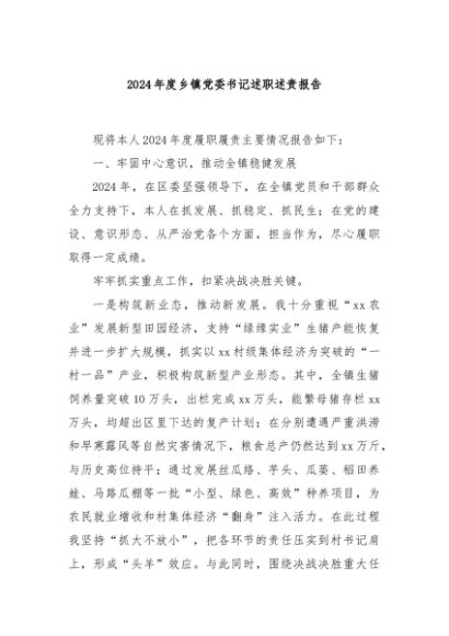 / 【七哥公文】2025年:2024年度乡镇党委书记述职述责报告+更多免费公文+VX:QiGeGongWen2024