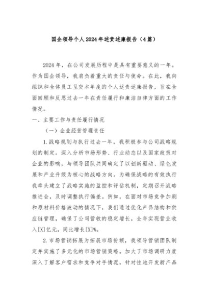 / 【七哥公文】2025年:(4篇)国企领导个人2024年述责述廉报告+更多免费公文+VX:QiGeGongWen2024