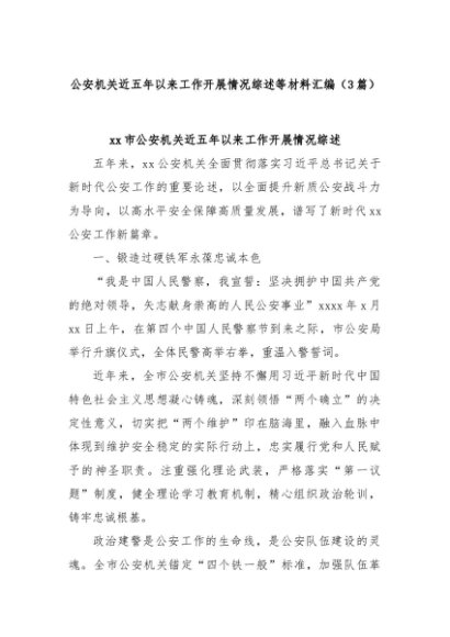 【七哥公文】2025年:(3篇)公安机关近五年以来工作开展情况综述等材料汇编+更多免费公文+VX:QiGeGongWen2024