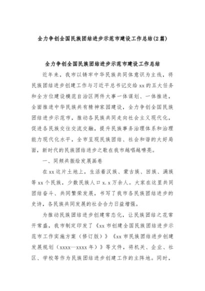 【七哥公文】2025年:(2篇)全力争创全国民族团结进步示范市建设工作总结+更多免费公文+VX:QiGeGongWen2024