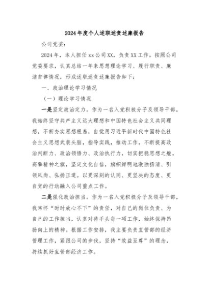 / 【七哥公文】2025年:2024年度个人述职述责述廉报告+更多免费公文+VX:QiGeGongWen2024