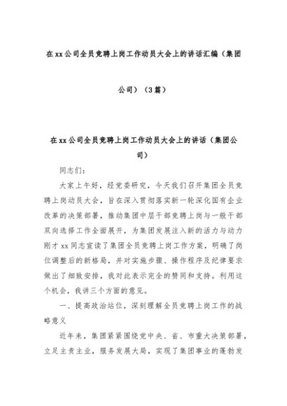 【七哥公文】2025年:(3篇)在xx公司全员竞聘上岗工作动员大会上的讲话汇编(集团公司)+更多免费公文+VX:QiGeGongWen2024