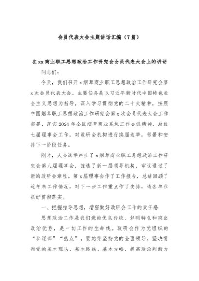 / 【七哥公文】2025年:(7篇)会员代表大会主题讲话汇编+更多免费公文+VX:QiGeGongWen2024