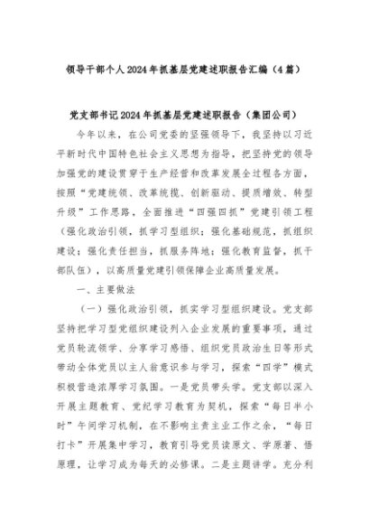 【七哥公文】2025年:(4篇)领导干部个人2024年抓基层党建述职报告汇编+更多免费公文+VX:QiGeGongWen2024