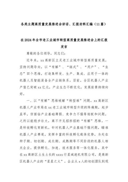 【七哥公文】2025年:(11篇)各类主题高质量发展推进会讲话、汇报材料汇编+更多免费公文+VX:QiGeGongWen2024