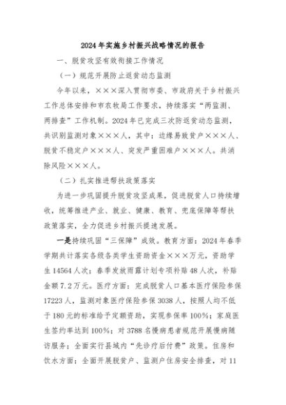 / 【七哥公文】2025年:2024年实施乡村振兴战略情况的报告+更多免费公文+VX:QiGeGongWen2024