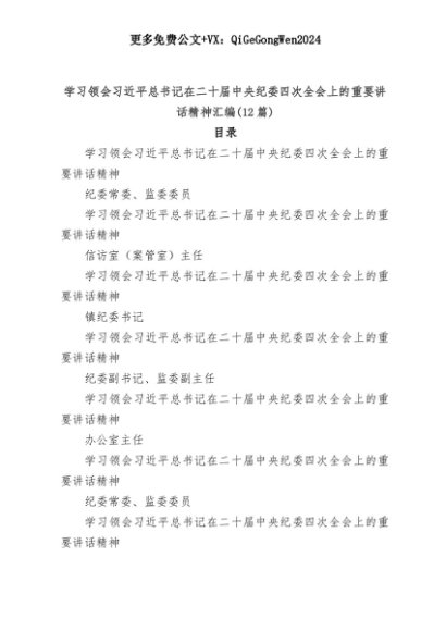【七哥公文】2025年:(12篇)学习领会习近平总书记在二十届中央纪委四次全会上的重要讲话精神汇编+更多免费公文+VX:QiGeGongWen2024+更多免费公文+VX:QiGeGongWen2024