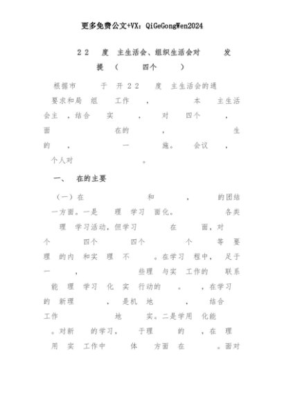 【七哥公文】2025年:领导干部2024年度民主生活会、组织生活会对照检查发言提纲(围绕“四个带头”)+更多免费公文+VX:QiGeGongWen2024+更多免费公文+VX:QiGeGongWen2024