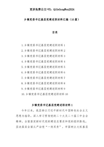 【七哥公文】2025年:(10篇)乡镇党委书记基层党建述职材料汇编+更多免费公文+VX:QiGeGongWen2024+更多免费公文+VX:QiGeGongWen2024