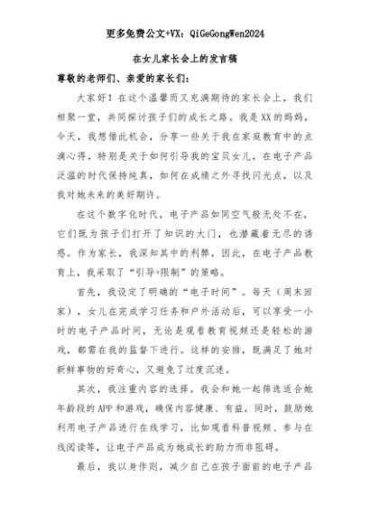 【七哥公文】2025年:在家长会上的发言+更多免费公文+VX:QiGeGongWen2024+更多免费公文+VX:QiGeGongWen2024
