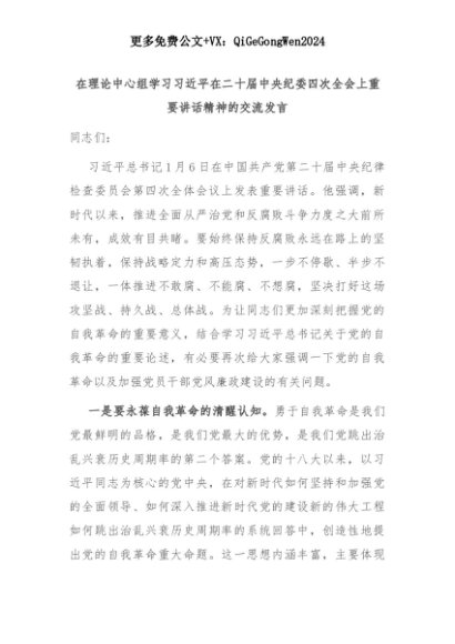 【七哥公文】2025年:在理论中心组学习习近平在二十届中央纪委四次全会上重要讲话精神的交流发言+更多免费公文+VX:QiGeGongWen2024+更多免费公文+VX:QiGeGongWen2024