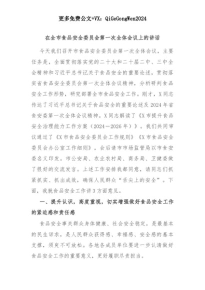 【七哥公文】2025年:在全市食品安全委员会第一次全体会议上的讲话+更多免费公文+VX:QiGeGongWen2024+更多免费公文+VX:QiGeGongWen2024