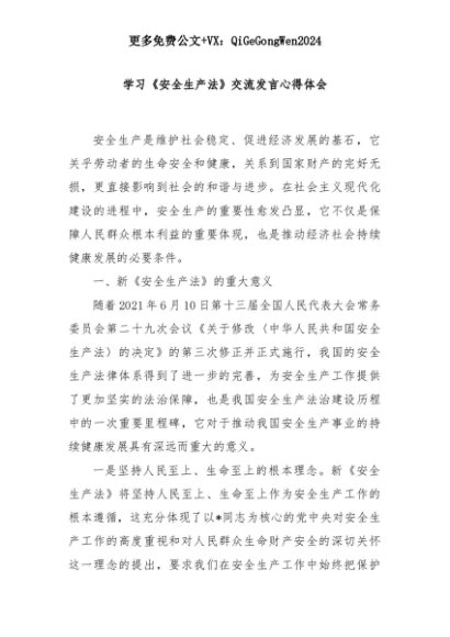 【七哥公文】2025年:学习《安全生产法》交流发言心得体会+更多免费公文+VX:QiGeGongWen2024+更多免费公文+VX:QiGeGongWen2024
