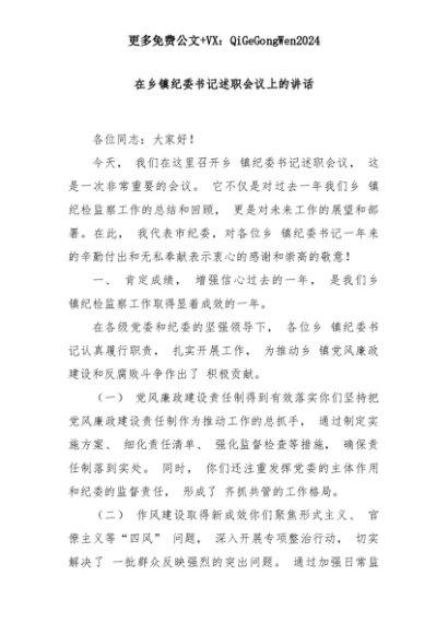 【七哥公文】2025年:在乡镇纪委书记述职会议上的讲话+更多免费公文+VX:QiGeGongWen2024+更多免费公文+VX:QiGeGongWen2024