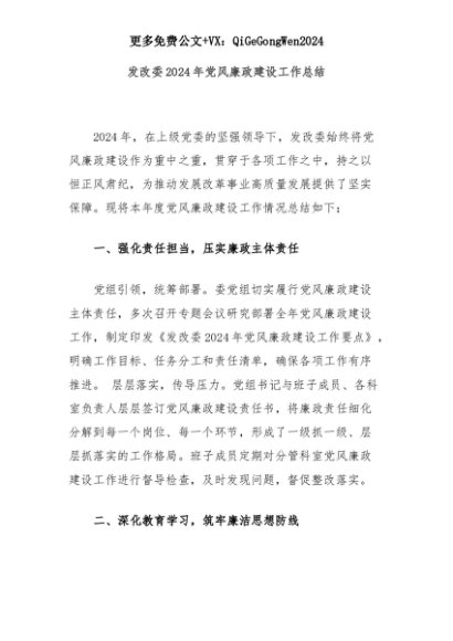 【七哥公文】2025年:发改委2024年党风廉政建设工作总结+更多免费公文+VX:QiGeGongWen2024+更多免费公文+VX:QiGeGongWen2024