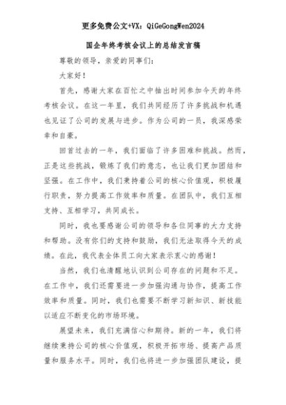 【七哥公文】2025年:国企年终考核会议上的总结发言稿+更多免费公文+VX:QiGeGongWen2024+更多免费公文+VX:QiGeGongWen2024