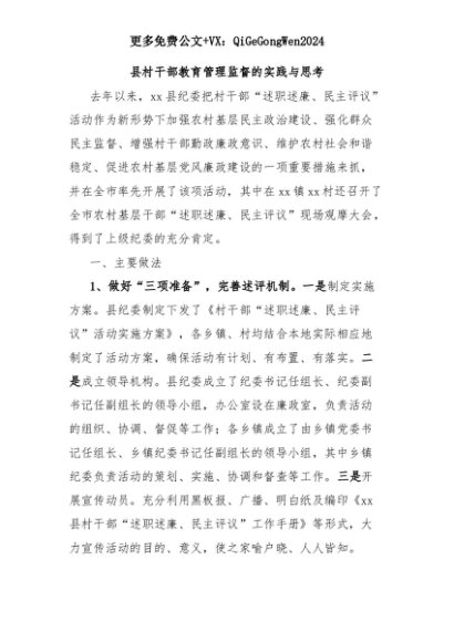 【七哥公文】2025年:县村干部教育管理监督的实践与思考+更多免费公文+VX:QiGeGongWen2024+更多免费公文+VX:QiGeGongWen2024
